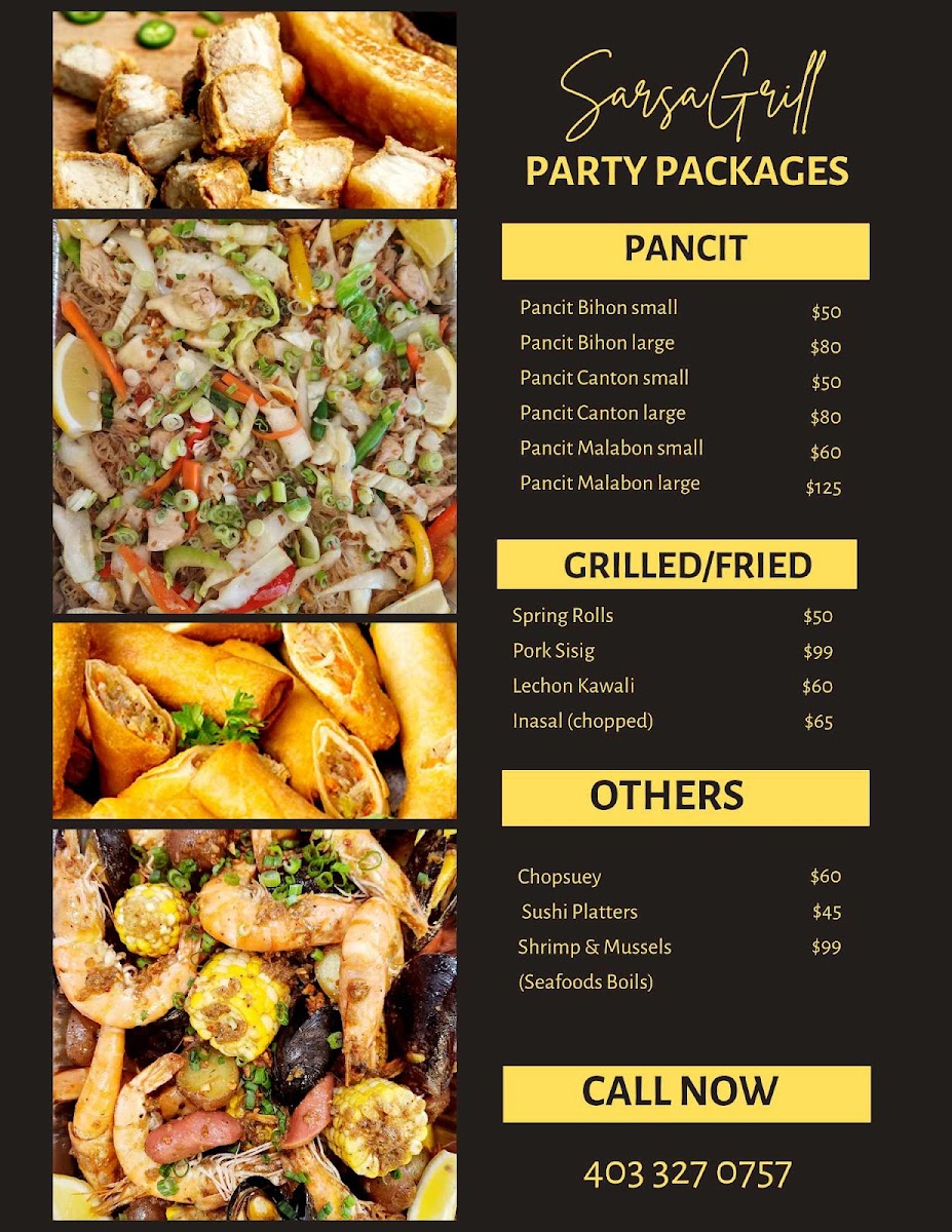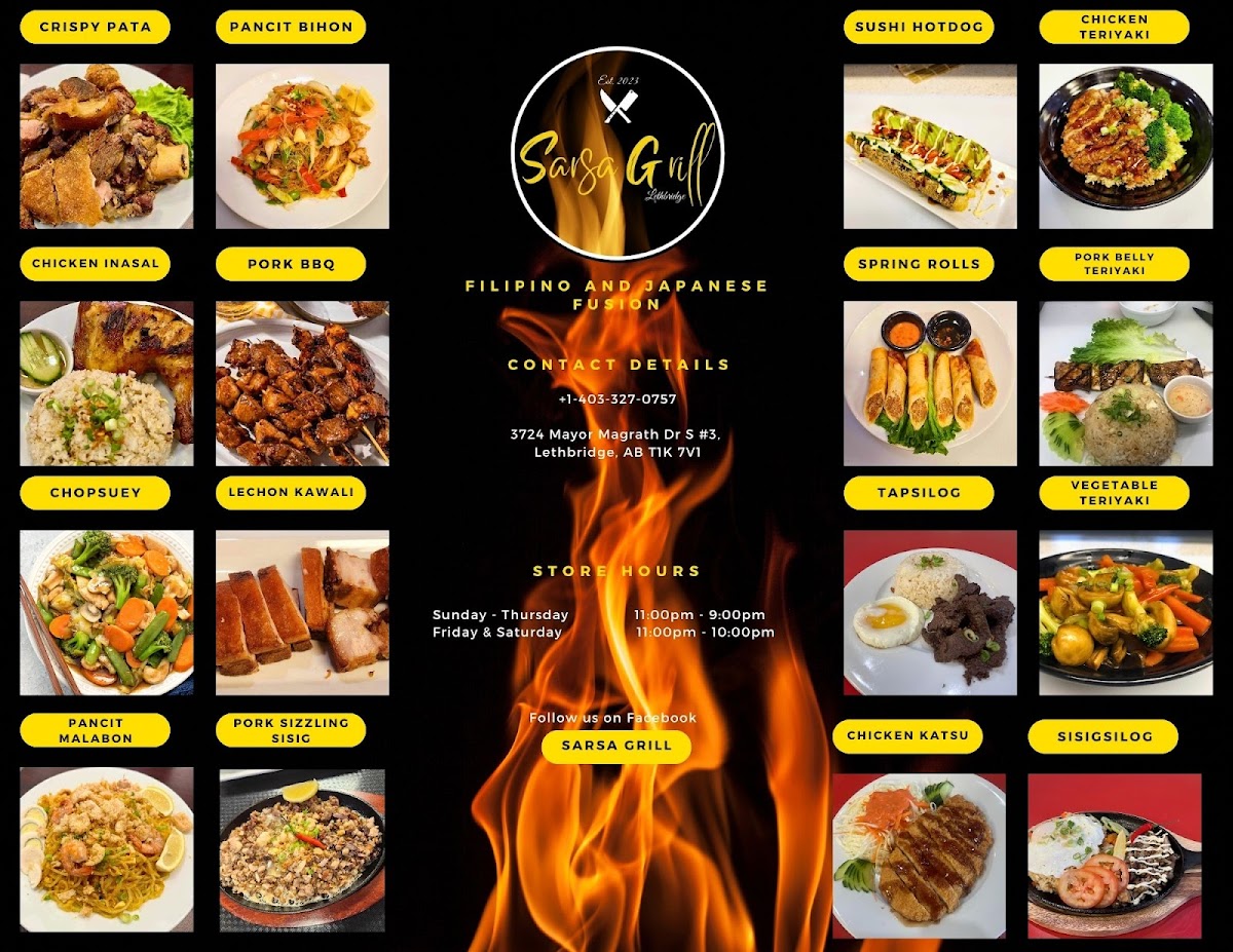 Welcome to Sarsa Grill, a delightful Filipino restaurant located at 3724 Mayor Magrath Dr S in Lethbridge, Alberta. This culinary gem offers an extensive menu brimming with authentic Filipino flavors. Noteworthy highlights include the Pork Sizzling Sisig and Chicken Inasal, both priced at CA$14.99, alongside the succulent Crispy Pata at CA$20.99 and the comforting Pancit Bihon at CA$13.99.